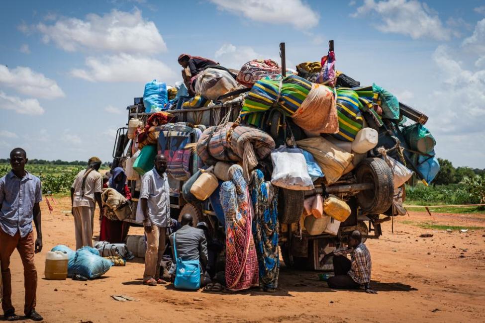 Un camion transporte les biens de la famille de Daoud qui quitte le Soudan. Plus …